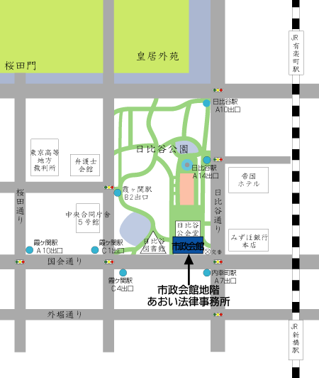 市政会館地階 集合場所:あおい法律事務所